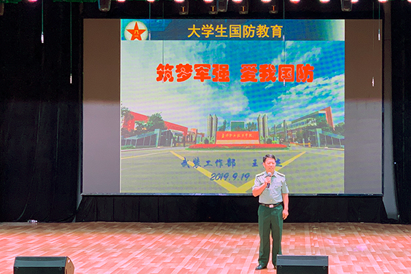 9月19日晚自习期间,学院在文化中心三楼开展了“筑梦强军、爱我国防”主题教育讲座。由学院武装工作部军事教研室主任王俊杰老师主讲,医疗护理分院2019级800余名新生参加。王俊杰老师从中国国防、中国武装力量,新时代中国国防发展状况、周边环境及当代大学生如何支持国防建设等方面进行了详细阐述。讲座图文并茂,主旨明晰,视频感动,催人奋进。全体同学秩序良好,聆听认真,深受教育和鼓舞。