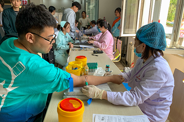 献血现场,参与献血的学生在医护人员和志愿者的引导下,按照疫情防控期间团体献血的有关要求,做好各项防护措施,有序地进行登记、体检、测量血压、测血型等程序,并认真听取医护人员讲解献血前后的注意事项,献血活动有序进行。