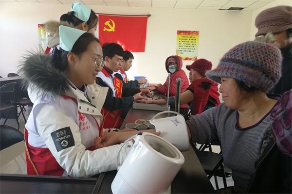 在绥中县沙河镇沙河村,爱心医疗团队为当地村民进行了相关医疗服务,包括急救知识宣传与现场演示,常见病防治知识宣传,测量血压、血糖、心电图,中医推拿按摩等。爱心医疗团队通过亲访、亲闻、亲记的方式,在对村民的健康状况进行深入细致地了解的同时,也向他们宣传了科学实用的保健知识,提高了他们自我保健的意识。同时也让学生在社会实践中得到锻炼,提升自我,为将来的学习和工作打下坚实的基础。