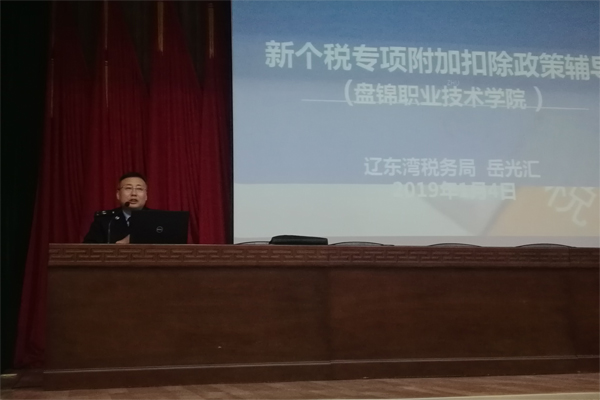1月4日13:30,学院财务处于学院图书馆报告厅组织学院全体教职工参加了“个税专项附加扣除”专题辅导会。本次专题辅导会由学院财务处张树田处长主持,特邀辽东湾税务局岳光汇科长莅临...